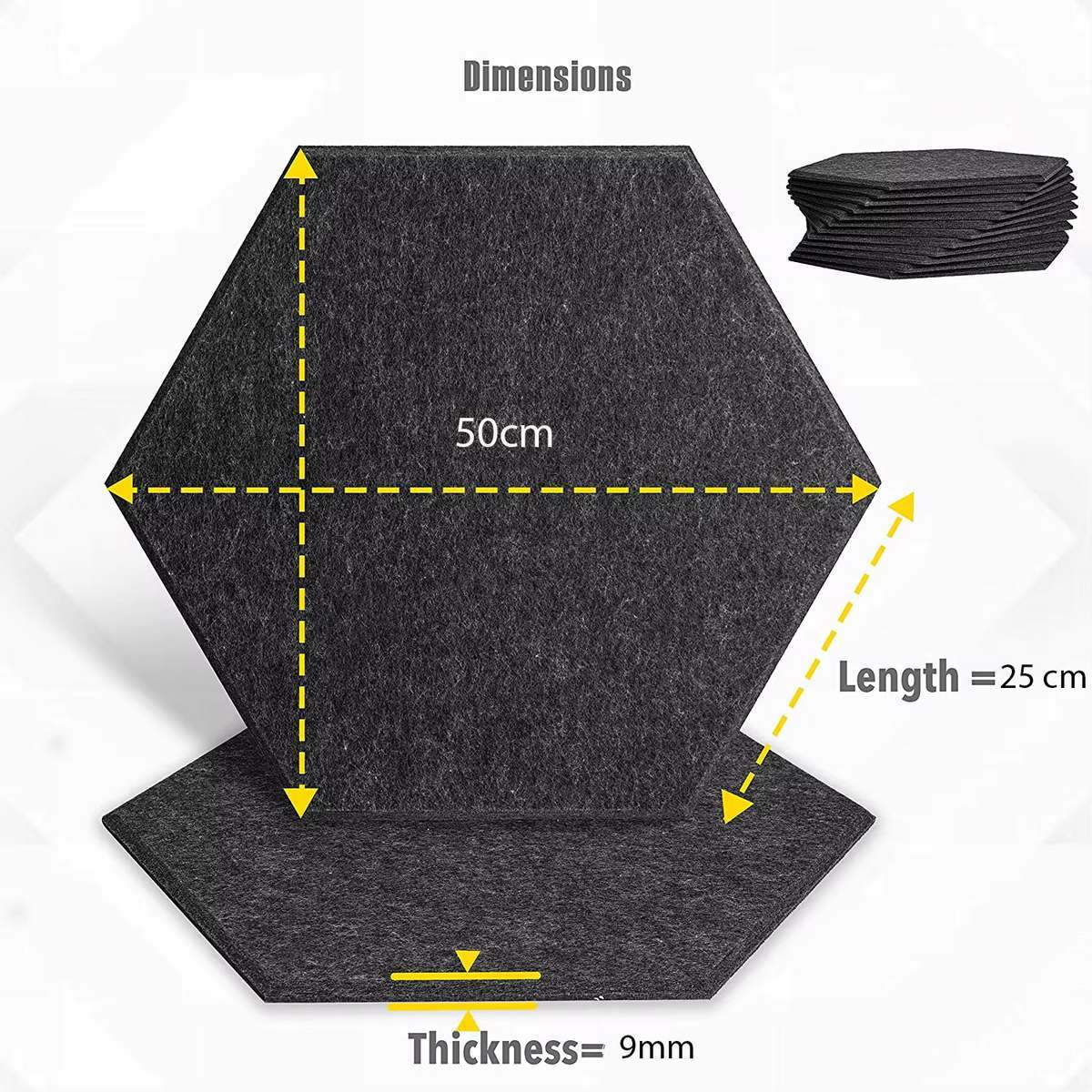 Bilnora Extra Dicht Zeshoekig akoustische panelen van vilt 50x50x0,9cm